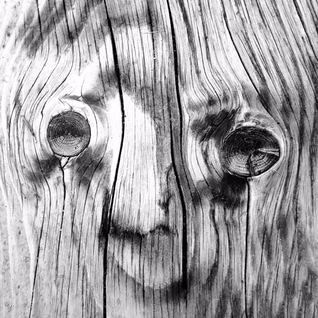 That’s George, the face I see in the wooden steps leading down to the koi pond in the Japanese garden. Always smiling, George reminds me that peace pools in and around the pond. The big gold carp, mouths open in perfect Os, embody hope — if only hope for a morsel of food. And the carefully placed boulders and cattails bring a soothing balance found rarely in the greater world. Together, George and I relish the stillness and solitude, smiles on our faces.