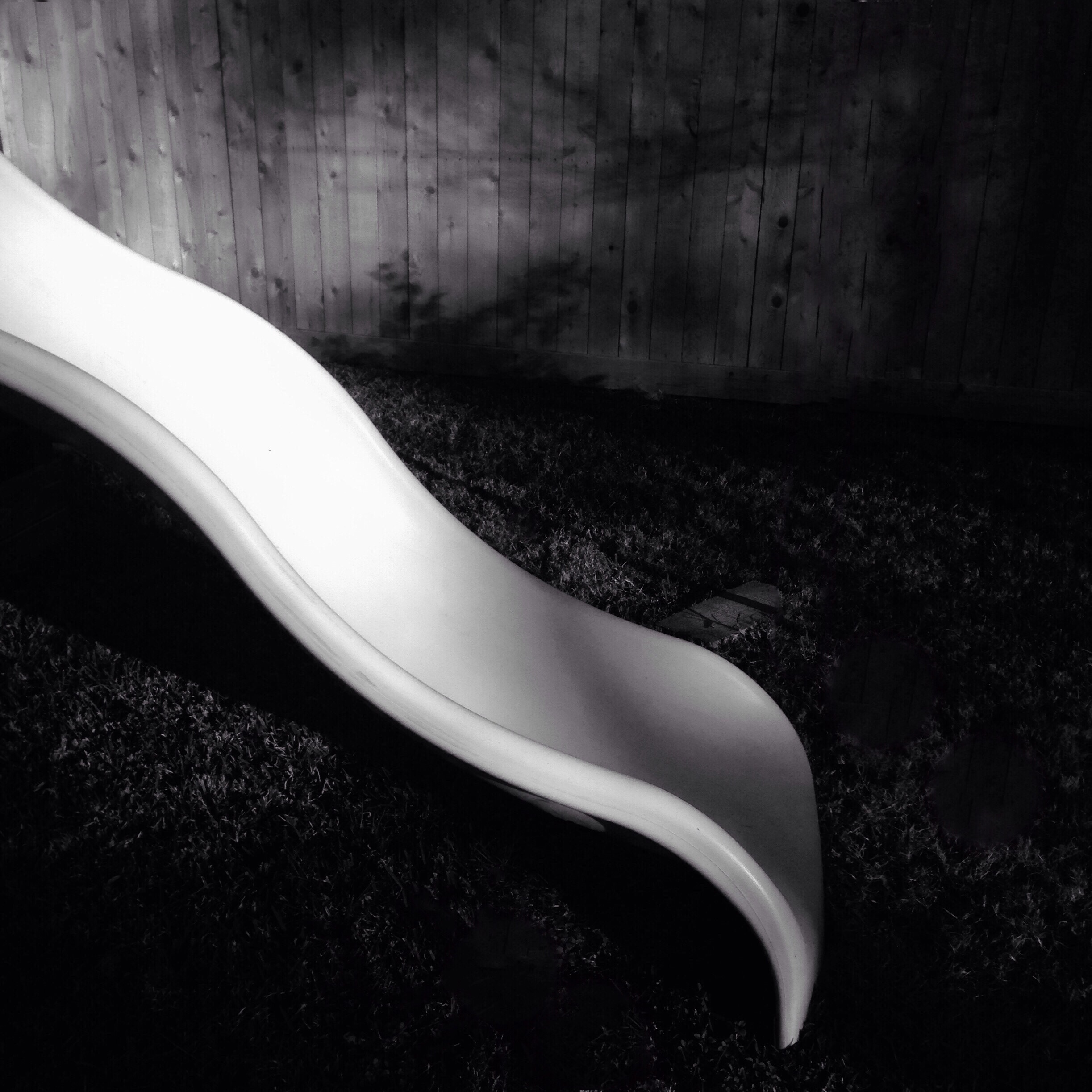 I sat a long time in my sister’s back yard to stare at the slide bolted to the family swing set. Its white fiberglass remained aglow well past dusk, as if the slide had soaked up the sun to light up the evening. The next day at the Houston Museum of Fine Arts we viewed a surreal painting that portrayed a similar wrinkle in the fabric of space/time. I stared at it as I’d stared at the slide and couldn’t remember if I’d actually touched the back yard chute — if it had substance or was indeed a mysterious gap sliced across my vision. Later at the house, young Anna whooshed down its length and didn’t disappear. So no, darn it, it wasn’t a portal to a parallel universe.