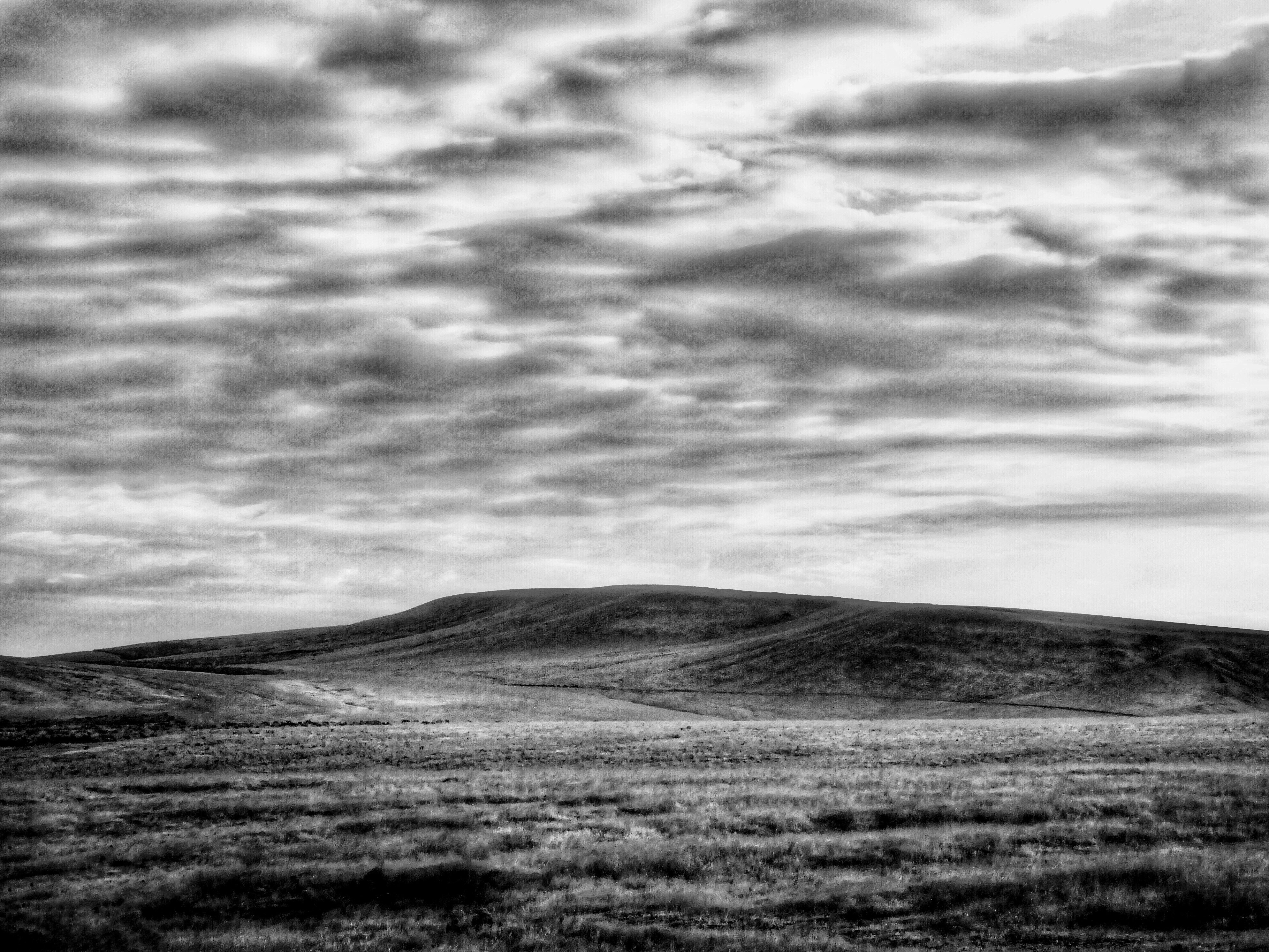 My few minutes of pondering this stark landscape was interrupted by a huge trailer truck squeezing onto the gravel shoulder next to my car. The driver, a small man with a big belly, climbed down from the cab carrying a bag of Chips Ahoy cookies. “Want one?” he asked. He fished one out for himself, leaned against the hood of my car, and stared at the clouds gathering above the bare rise. “When I was growing up, these hills were nothing to us,” he said, using his cookie as a pointer. “All around us were bigger mountains, bigger skies. Who’d even notice this li’l bump?” But after a couple of years driving truck, he came to realize that this low-slung wedge of land marked entry to home, the place he grew up, where memories were stored. I’m extrapolating his feelings, of course. What he said out loud was, “It’s bigger to me now. I give it a nod every time I drive by.”