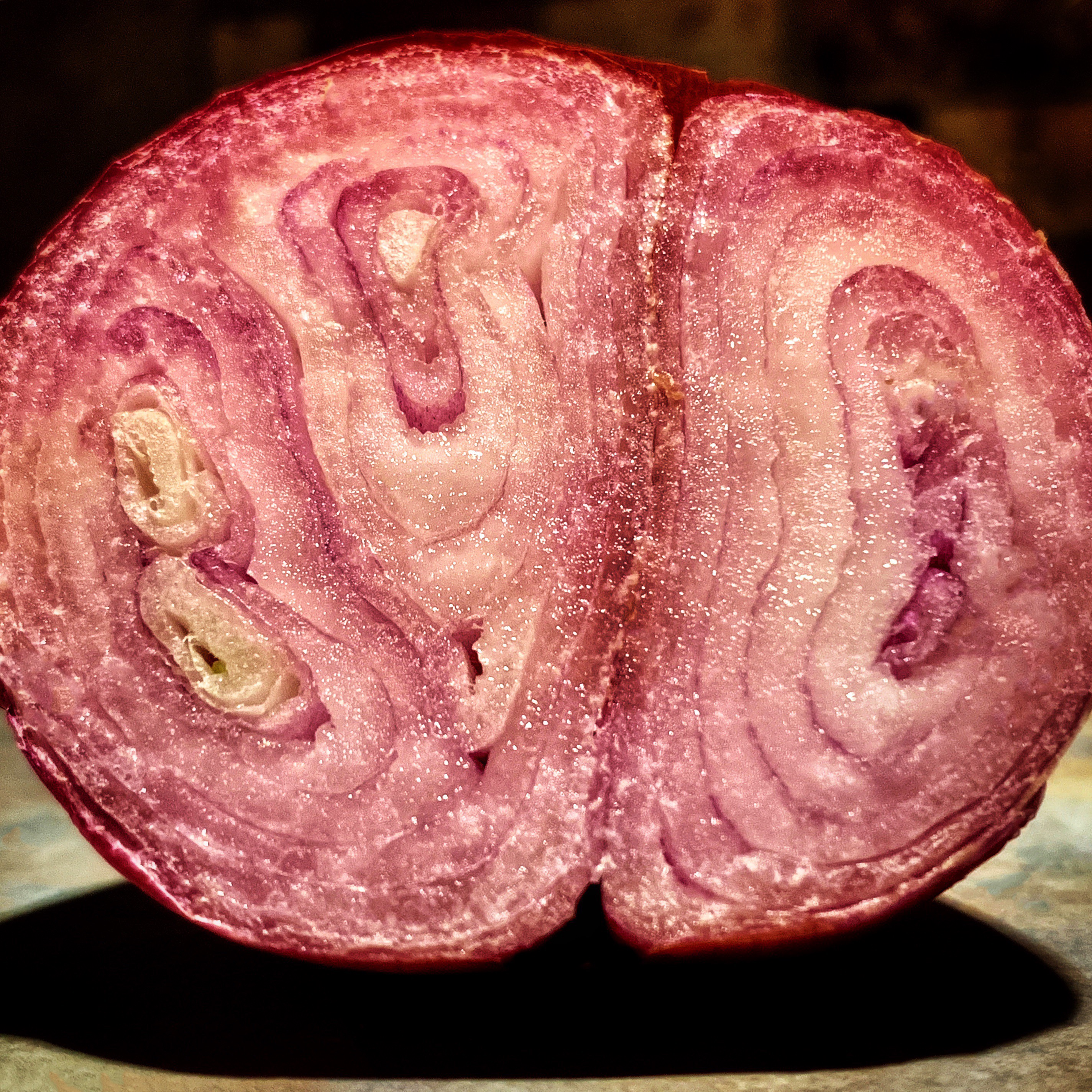 A shallot sliced in half resembles the cross-section of a brain. What are its thoughts on life and purpose as it fulfills its destiny, as it simmers in butter?