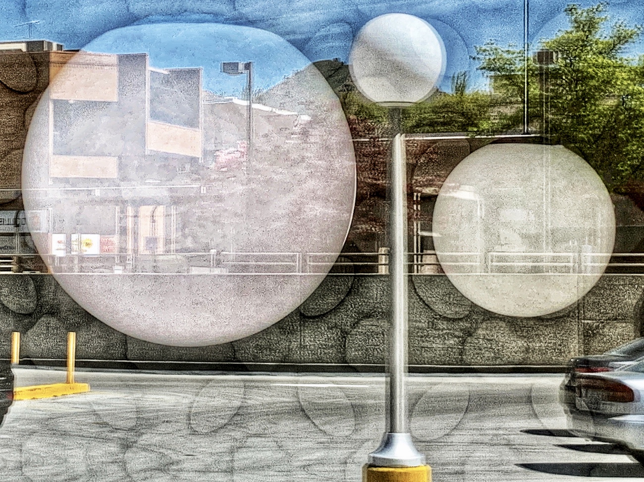 Reflections in store windows are puzzling enough. But mental reflection — hoo boy — overlays time, memory and emotions into complex compilations that obscure, reveal and tantalize. For instance: Yesterday, a worm on a downtown sidewalk triggered a decades-old memory of my babysitter smashing night crawlers between sheets of newspaper. (She believed a worm, squished, caught more fish.) The newsprint had headlines of JFK’s assassination. JFK propelled us to the moon. The moon landing opened my teenage mind to possibilities. I looked up yesterday from the worm to see moons (lamp globes) floating in a store window. Got goosebumps.