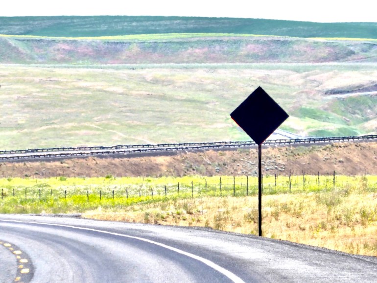 This ominous road sign (blacked out by work crews) stood against a landscape veiled in wildfire smoke and seared by noonday sun. It gave me pause. If God doesn’t speak in a booming voice but instead through earthly signs and symbols, then shouldn’t I take heed? Five miles farther, farmlands dimmed under a brownish cloud of burnt sagebrush. So I detoured, as we’ve all done so many times in life, to seek a clear route home.
