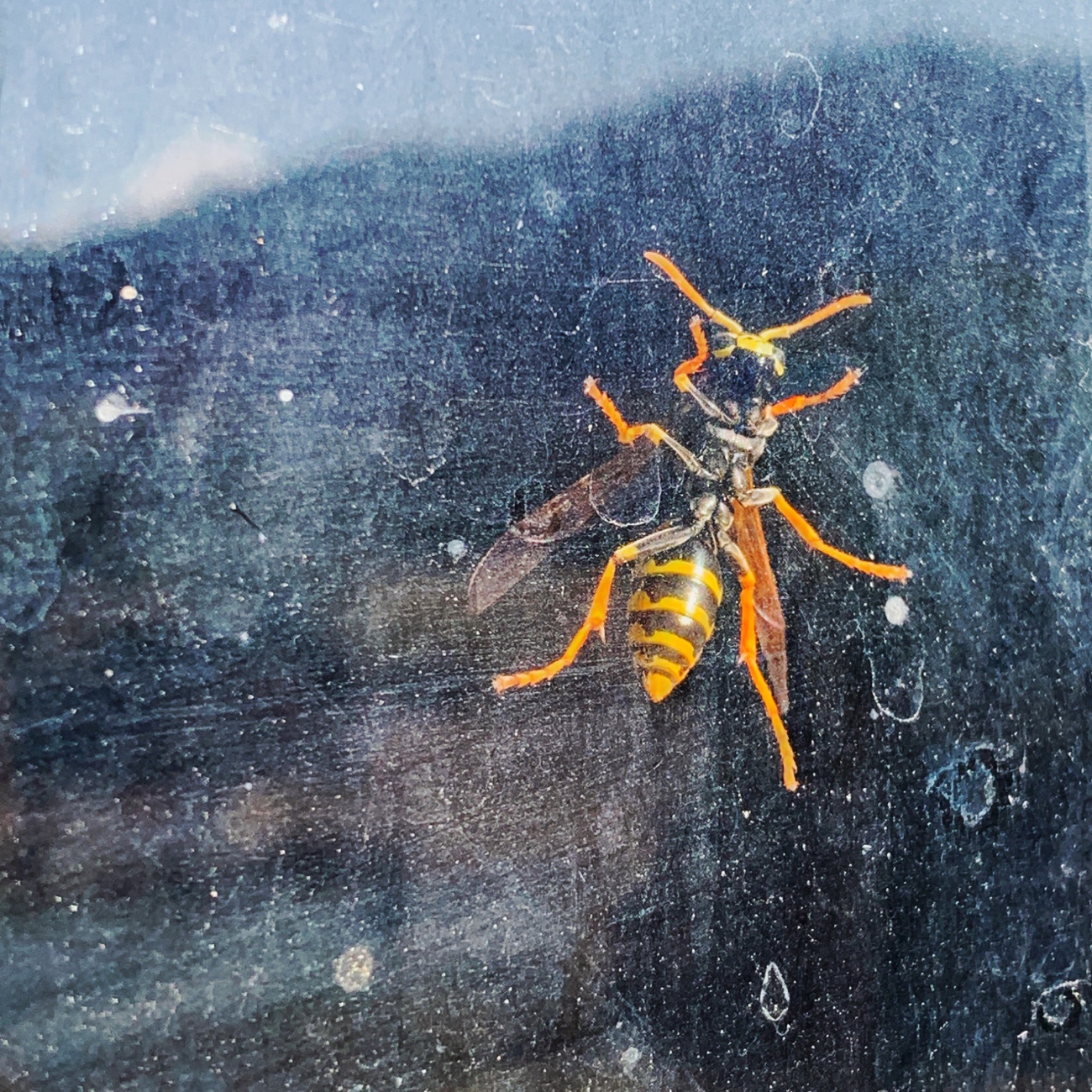 We often face barriers that keep us from favorite activities, work goals or even survival needs. We can break down these challenges and tackle each small piece step-by-step. Or, as this insect decided, we can scout a new route around the obstacle. The yellow jacket wisely abandoned attempts to smash or gnaw through this grimy window pane. Instead, it found a breeze coming through a gap under the door and squeezed through to freedom. Evidence that the simplest solution is often the right solution.