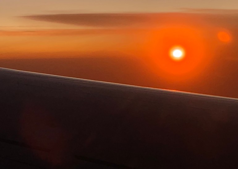 Window Seat #1 | Sun, clouds, jet wing — the combination can befuddle a smartphone sensor and, similarly, my brain. The sight brings to mind other situations of sensory overload: Aurora borealis shimmering against starlight, a seabird flock spiraling like a living tornado, wind-whipped snow falling at the Grand Canyon. It’s all too wondrous to define or analyze, so simply opening ourselves to accept the moment seems best. In fact, any new appreciation of daily splendor can begin tomorrow at sunrise.