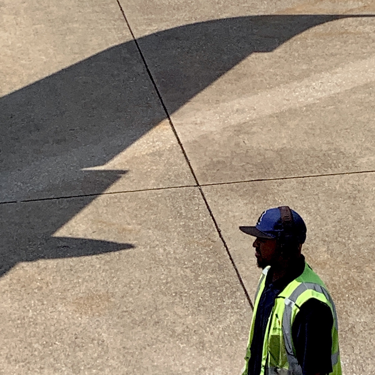 Window Seat #4 | An airport ramper I knew years ago had an easy relationship with extreme weather. “Take shelter inside your clothes,” he said. “And have the right clothes for every situation.” Rampers, who load luggage and de-ice planes (among myriad duties), have gear to combat blizzards, heat waves and everything in-between. On this 98-degree day in Dallas, rampers wore sweat-wicking, long-sleeve shirts to avoid sunburn and heat stroke. Some donned mesh French Foreign Legion-style hats with rear flaps for neck protection. All seemed to know the value of shade and sought the underwing with every lull in their work. “I don’t think of weather as the enemy,” laughed my ramper friend. “It’s my fashion buddy. Everyday it tells me what to wear.”