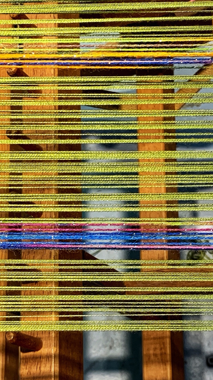 This loom’s weaver was kind enough to offer my brother tufts of unspun bunny fur to use for fishing flies.
