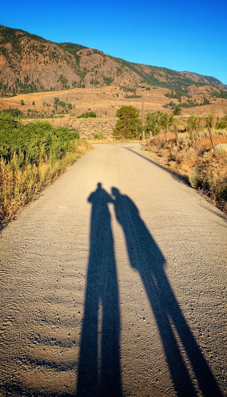 Long shadows remind us that the Earth spins. Low-angle light peeks over hills as we all rotate eastward, sunward, from dim to blinding bright. Right now we’re center-stage, spindly and clownish, but not for long. Our place in the universe shifts continuously as cosmic forces interplay. Vast trajectories, evolving planets, fiery stars all combine to project our goofy silhouettes along the gravel surface of a country road. We relish this spectacle; it diminishes by the minute.