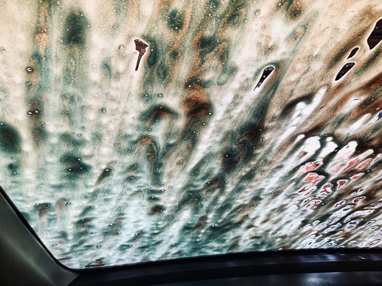 “Let that green light guide me in. Let that drizzle of water mist over my windshield. And let me sit back and watch those wondrous, thick colors melt and swirl in front of me, mixing and blending. Better than the greatest show in the sky because here, here in my car wash world everything is clean, safe, and sudsy good.”