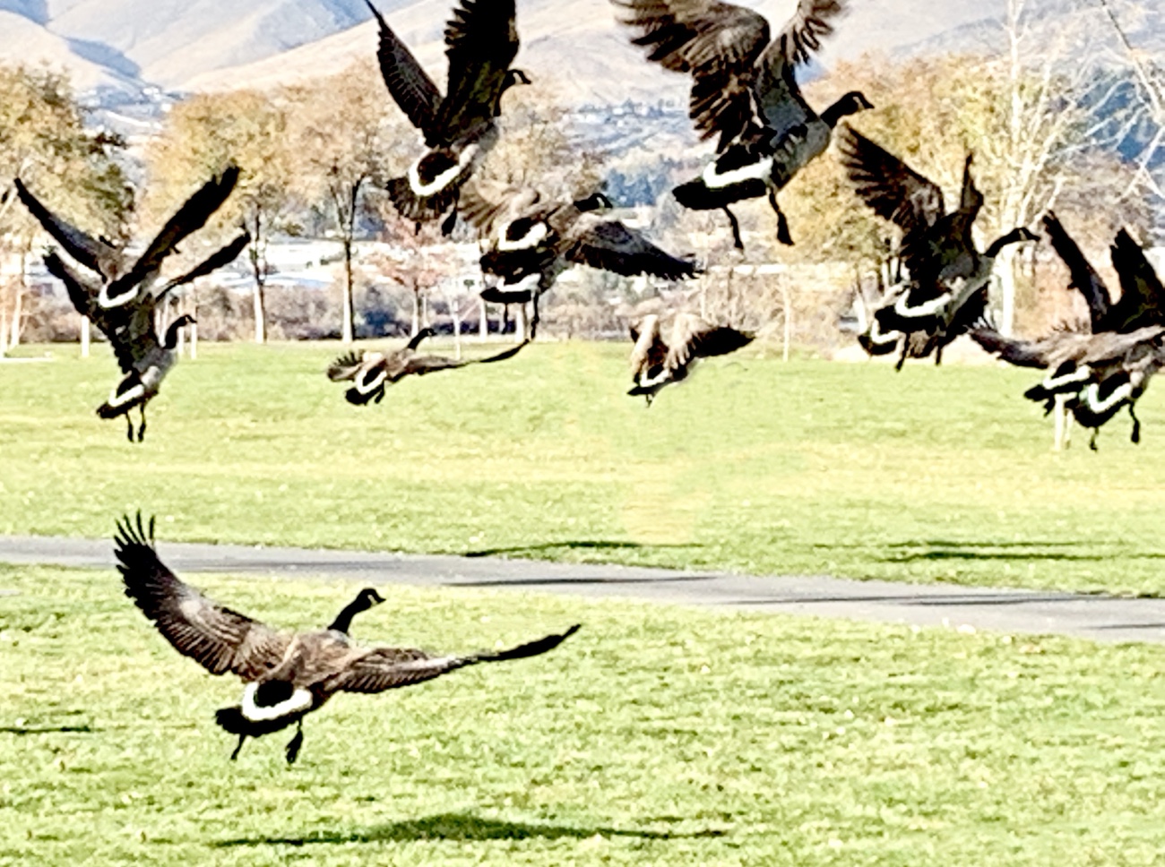 What’s alive in our lives — dog, horse, friends, family, each other — expanded years ago to include a surprise addition: Canada geese. They honk in the sky; they poop on the ground; they strut on our periphery, a presence just out of reach. Located along their Pacific flyway, our area hosts hordes of tourist birds every spring and fall, but it’s the resident pairs that affect us the most. They’ve set up households, hatched families, joined goose communities and populate the nearby parks, lakes and rivers. For the most part, it’s an easy coexistence. We give them space to graze and waddle. They give us the beauty of flight and daily hints at how Nature works.