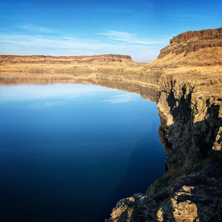 Probably best not to question climate science. Hotter temps and sinking islands mean something’s afoot. But the Channeled Scablands west of Othello always put my puny existence in perspective. My ego shrivels amid the Scablands’ grander schemes. For instance: Here comes a storm forged from ocean currents a thousand miles away. And an Arctic wind whips nearby glacial silt into tiny tornadoes. And geese navigate to this lake from Mexico using Earth’s magnetic field. How could this landscape — scoured by elemental forces of fire and floods — be affected by my solo visit? Sure, multiply me by 7.5 billion and you’ve got trouble. But here today, alone, I barely leave a smudge on this great wide world.