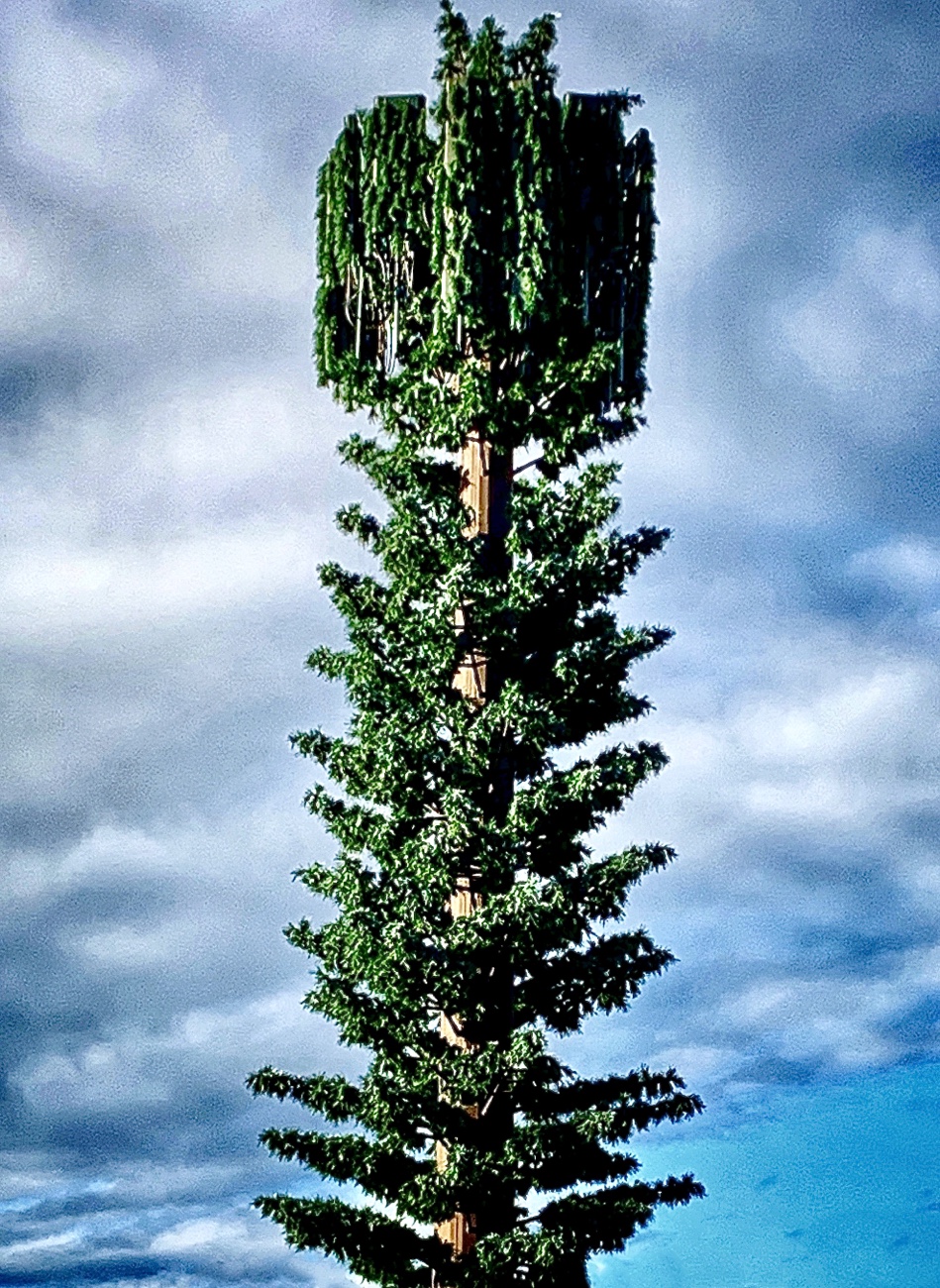 Let’s imagine a telecommunications engineer making his pitch: “It’s a cell tower, sure, but who’s gonna know? This thing will fool tree experts. It’s where squirrels will hide their nuts.” Question is: Why even bother to camouflage a cell tower? They’ve become just another unnoticed element on our techno-landscape, like overhead wires and surveillance cameras. Plus, if we absolutely must disguise a tower, I prefer that it mimic a rocket ship or maybe an elongated food item. Like a hot dog. Or a pickle.
