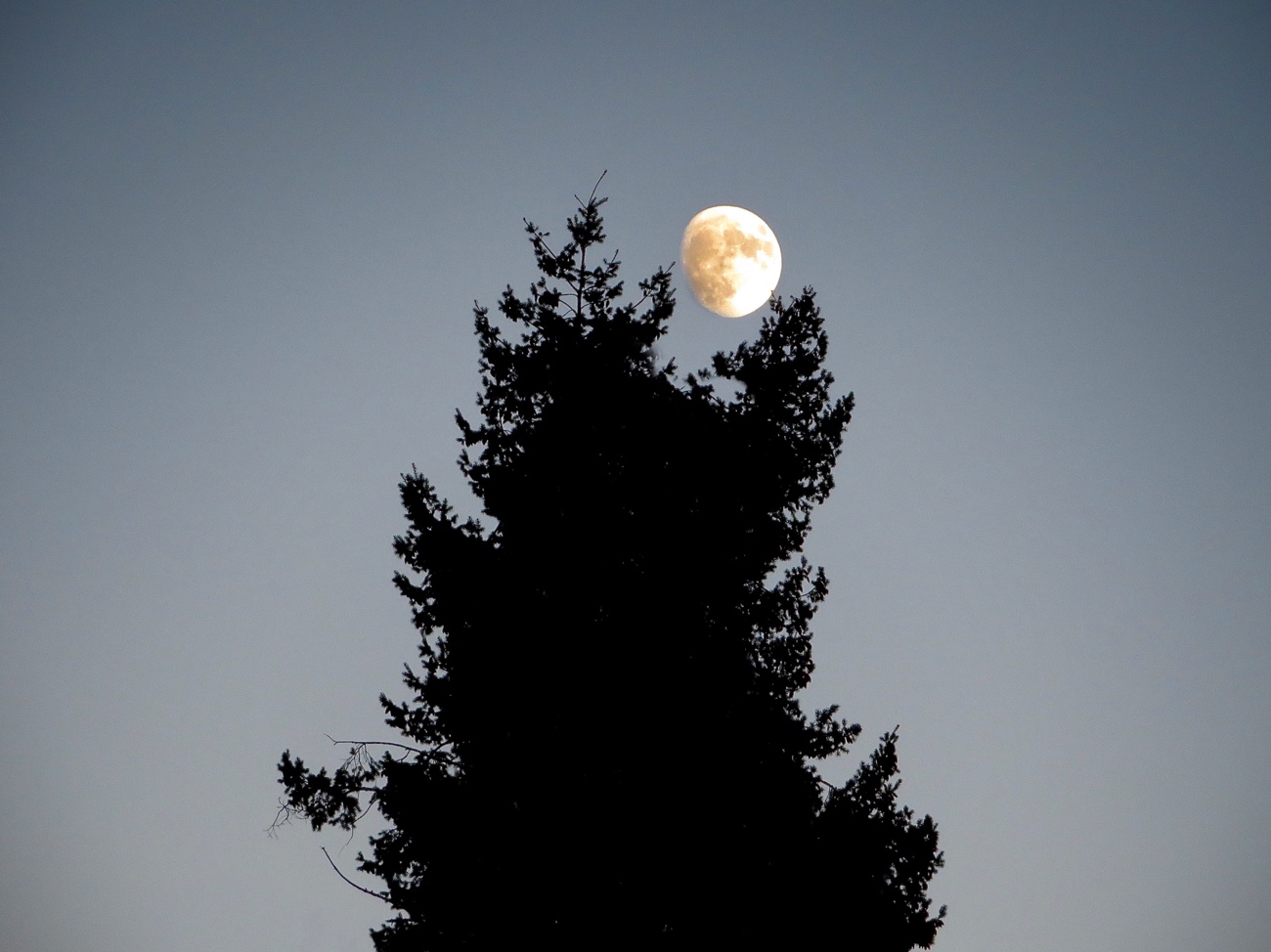 We’ve witnessed the sun’s power these last few nights. Light reflected off a waxing gibbous moon (in photo) has illuminated low clouds and brightened the neighborhood to near daytime levels. Beautiful, yes, because things glow. And not-so-beautiful because the glow highlights yard debris that we hoped would be hidden under snow. (It’s late this year.) I marvel that a giant ball of flaming gas almost 93 million miles away fires me up to rake pine cones and fallen branches. My yard work is solar powered even in the dark.