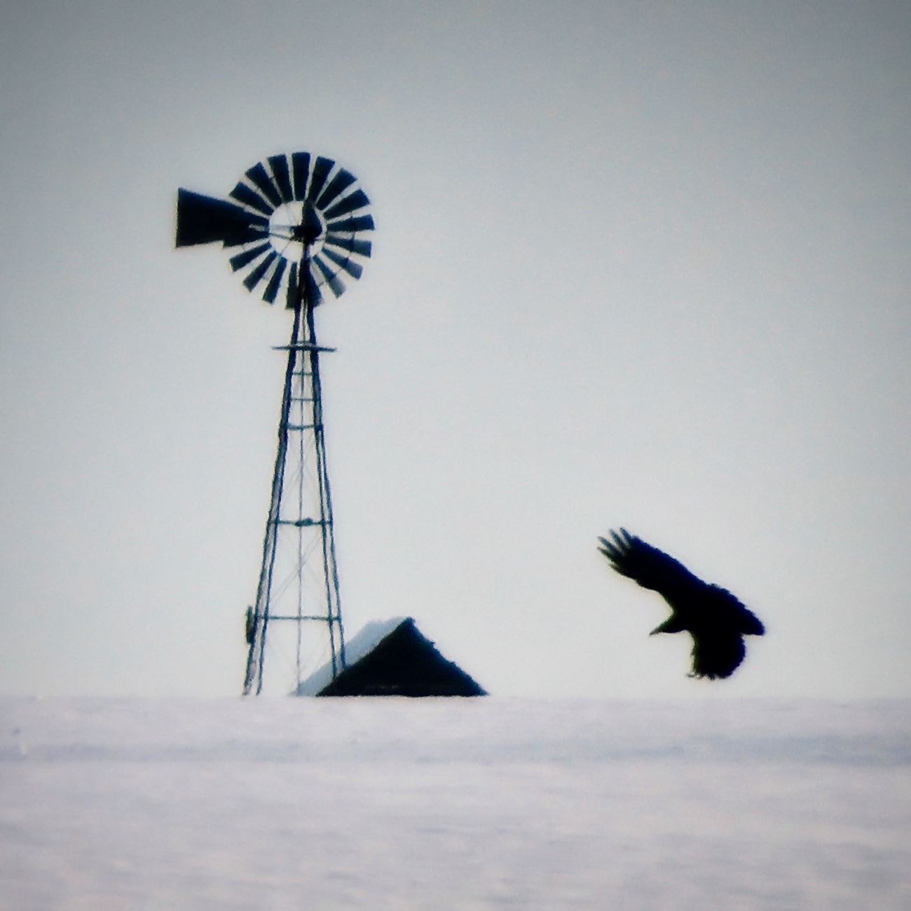Run-down windmills attract a variety of wildlife. Ravens, in particular, use them as easy roosts. Hawks perch high to spy rabbit snacks. Marmots dig dens under concrete slabs. Insects and rodents nest in adjacent utility sheds. Windmill buffs bemoan the loss of these dryland devices. But they were built to survive the harshest conditions, and they do. A half-collapsed homestead is often flanked by a windmill standing strong as home to dozens of critters. A good example of Plateau repurposing.