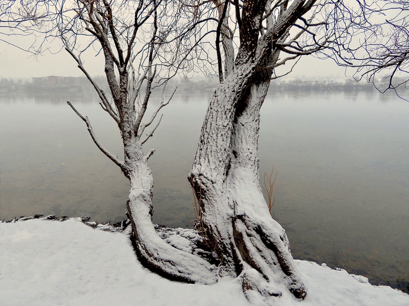 Inclement weather can help us notice what goes mostly unnoticed. A dusting of snow accentuates shapes and textures, like an expert application of facial cosmetics. (Were those lips and eyelashes there all along?) On trees, snow will highlight bark toughened against northern winds, roots thickened in the search for food and trunks curved by their reach for sunlight. If I stand here long enough, what will the gathering snow reveal about me? Definitely eye bags from late-night reading. Hair sprouting where it didn’t before. And maybe my tongue extended to catch some snowflakes, to grab a taste of winter sky.