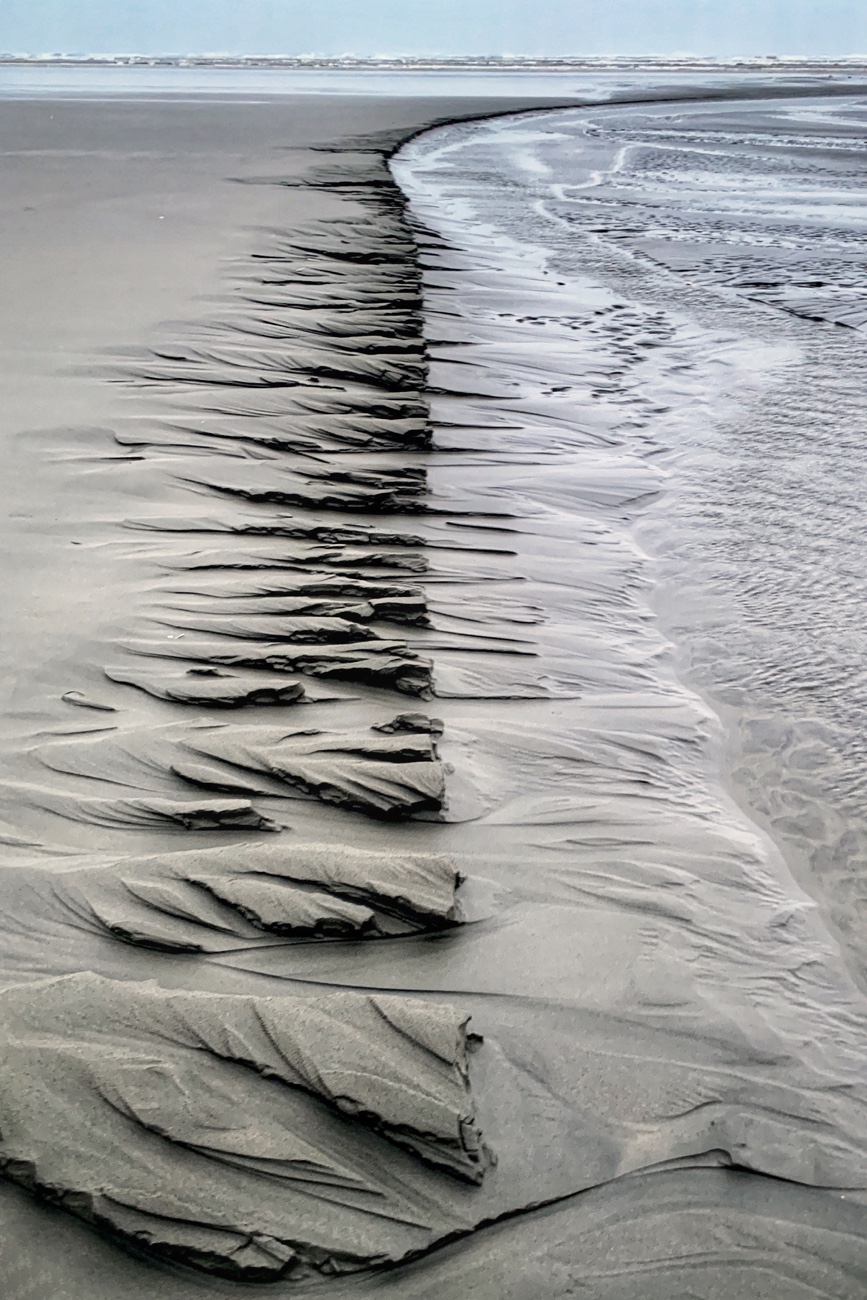 Sea Visit | A stormy beach offers good lessons in change and impermanence. The sand is like an Etch-A-Sketch, drawn and redrawn by the onslaught of wind, rain, surf and tides. What we embrace one day — a winding creek, giant cedar logs, great swirls of kelp — are gone the next, replaced with the unexpected, sometimes the unimagined. (What kind of deep-sea monster is that?) We explore this new beach architecture with an eye to the darkening horizon, where the next life-changing storm brews. Of course, the big questions loom: What’s the meaning of this maelstrom? Is reality really so malleable? And what’s the best way to dry out these pants?
