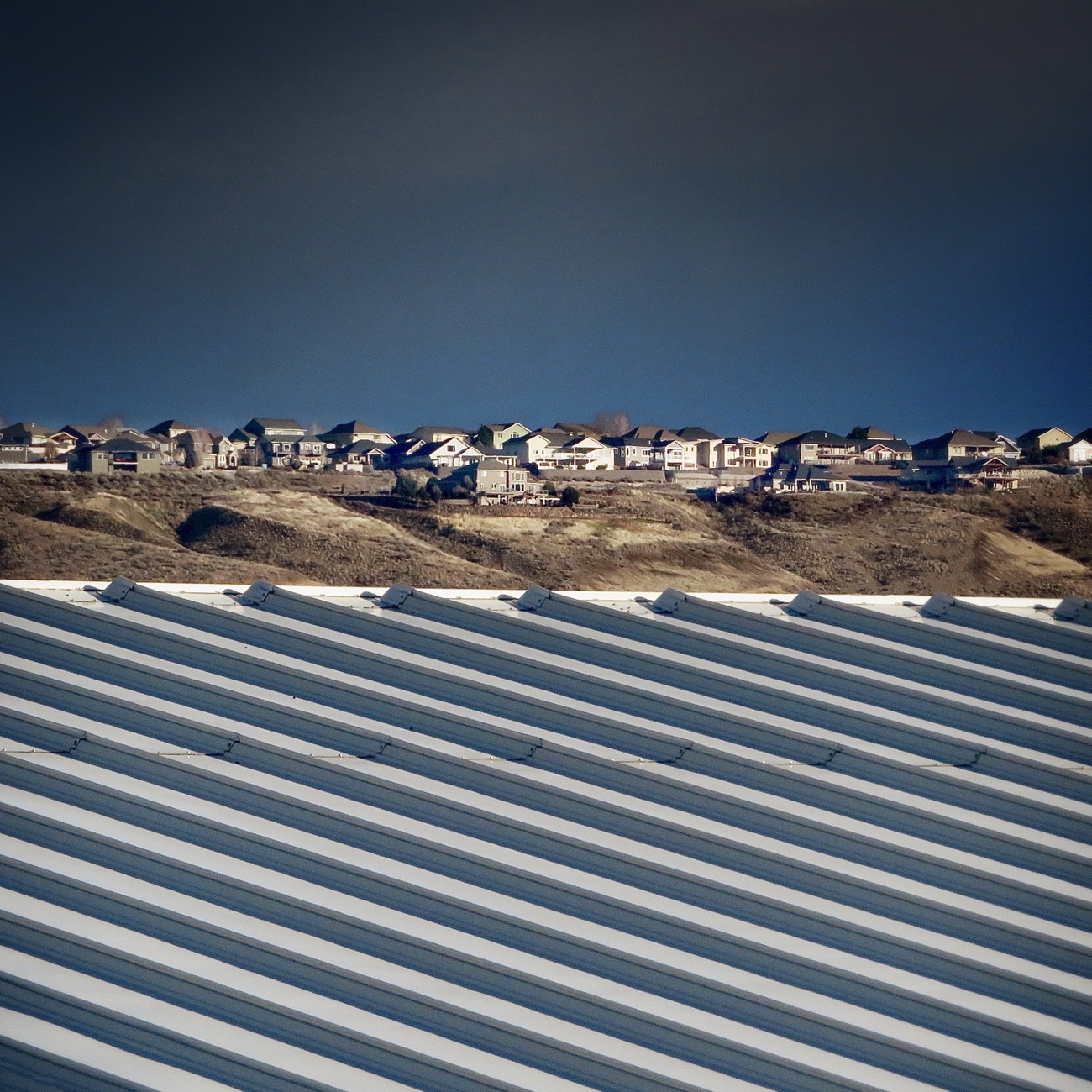[In photo: Big houses jostle for the best view on Badger Mountain. In the foreground is the roof of a maintenance shed located a couple of miles from the ridge.]