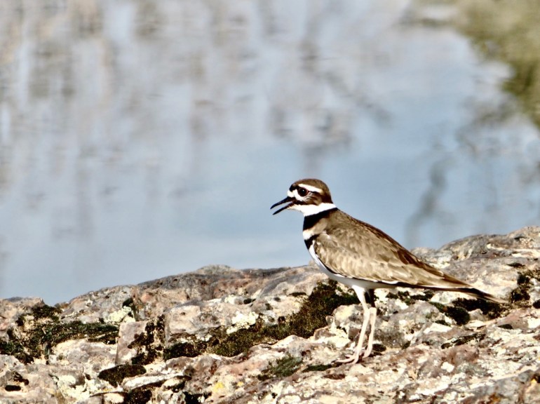 Resting Birds #1 |The list of birds I know on sight stretches to about, um, nine. Crows, robins, pigeons, hawks, eagles, geese, pelicans, flamingoes, ostriches, and we’re done. I’m always incredulous when dedicated birdwatchers tell me they traveled to Arizona and spotted 143 different species. Since nobody can actually keep track of that amount of plumage, wing shapes, beak curls, tweets and chirps, my only conclusion is that birders, like the creatures they stalk, engage in flights of fancy. I mean, who’s to know if they spotted a flat-eared quetzal or not? Anyway, one of the three birds I can identify by sound is the killdeer, mostly because its name is nearly the same as its call. Kill-dee! The other two species I know by ear are the mourning dove (“coo-OOO-ooo”) and, from my childhood, the talking mynah bird at the hardware store (“I’m pretty. You’re not!”). That rascal was a straight shooter.