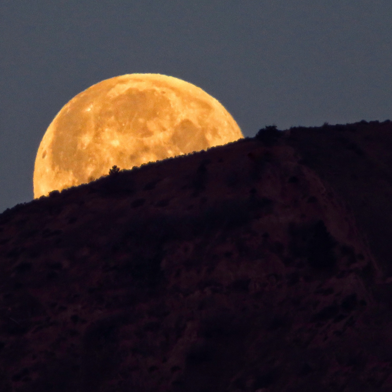[In photo: Seen from our front yard, Tuesday night’s supermoon sets behind foothills of the North Cascades.]