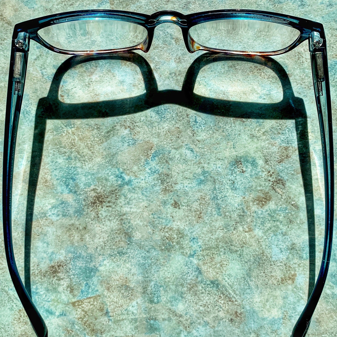 [In photo: Eyeglasses with shadow in strong evening sun. By the way, my #1 stay-put pursuit is the enjoyment of cooking and eating. It satisfies all the senses.]