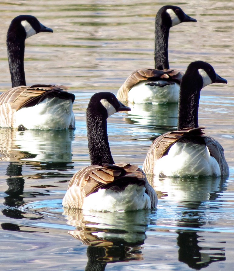 [In photo: Canada geese on the Columbia River practice synchronized head turns.